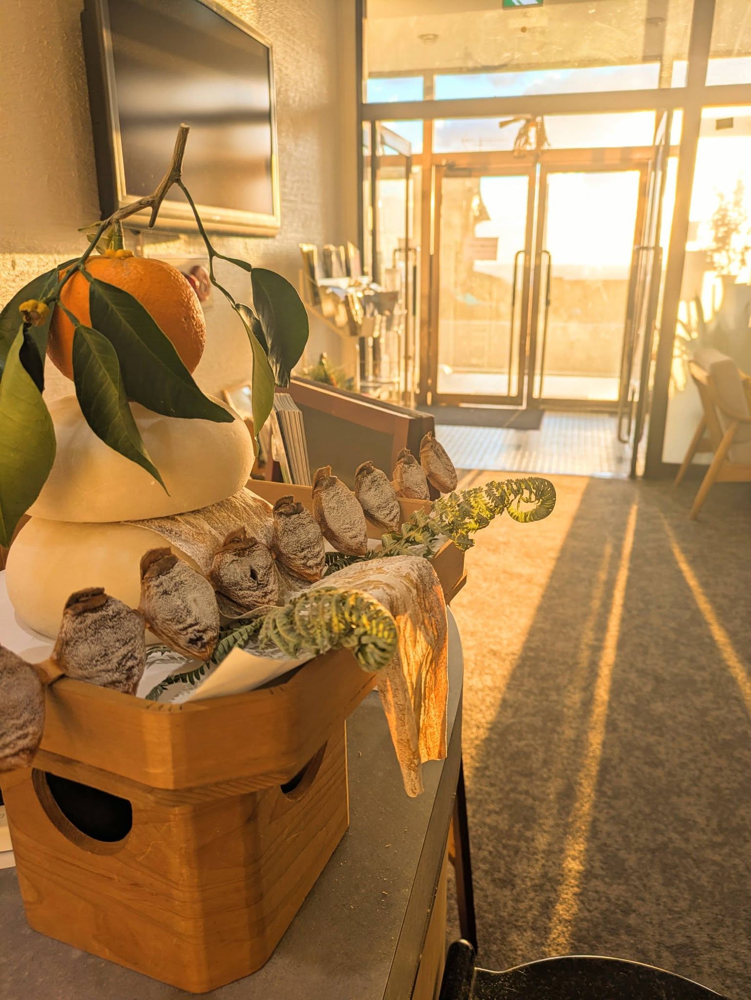 海から延びる夕日に染まる鏡餅を見ると、豊かな自然の中で暮らし仕事ができる喜びを魅せられているようでありがたい気持ちで満たされました。