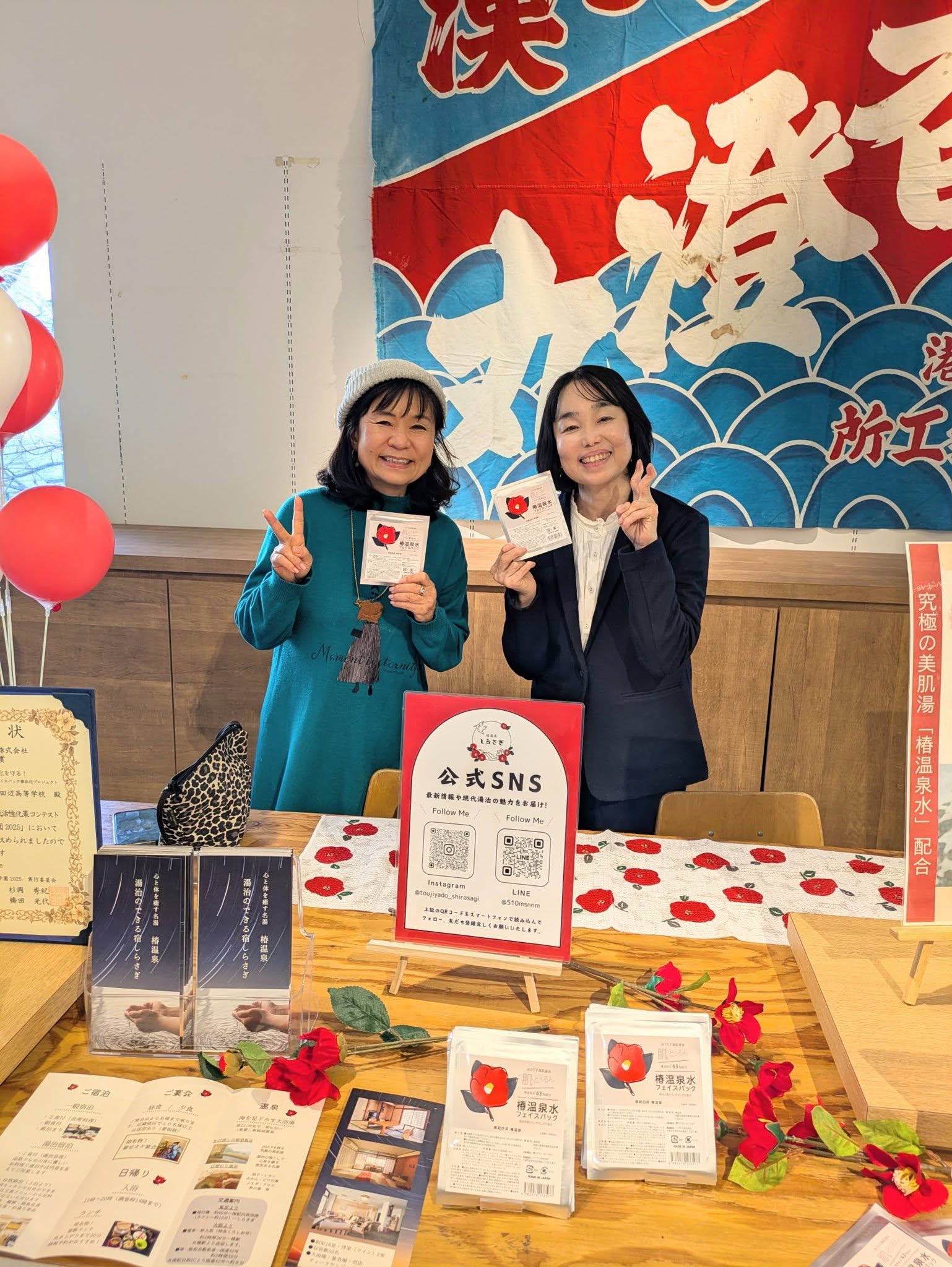椿温泉の効能をフェイスパックで感じてもらい、その次に